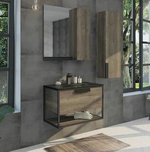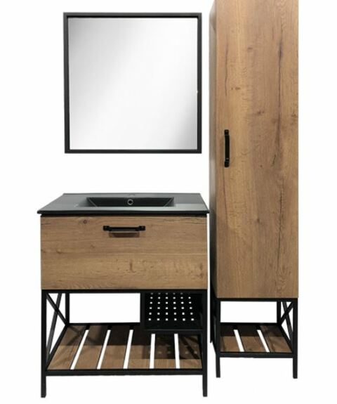 Comforty Бредфорд-75 Тумба с черной раковиной Comforty 75E, дуб темный