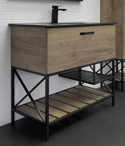 Comforty Бредфорд-90 Тумба с черной раковиной Comforty 90E, дуб темный