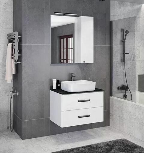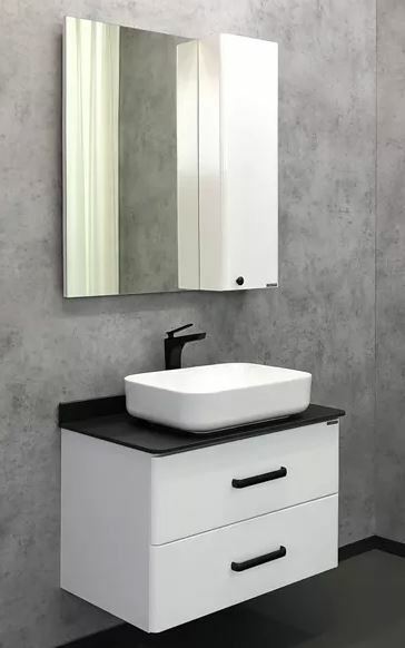 Comforty Амстердам-75 Тумба+столешница черная с раковиной T-Y9378, белый