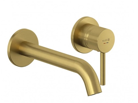 Kludi Bozz смеситель на раковину настенный излив 180 мм, шлифованное золото 38244N076