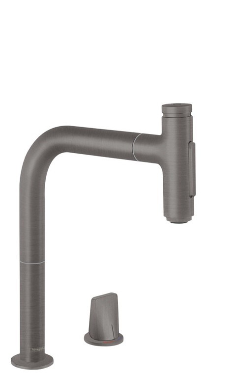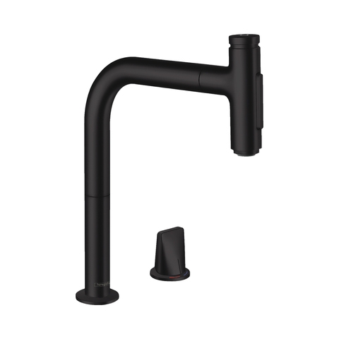 Hansgrohe Metris Select M71 смеситель д/кухни на 2 отв с выд. душ, Sbox, матовый черный 73818670