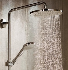 Однорежимный круглый верхний душ с эффектом тропического дождя. Тип струи RainAir обеспечивает мягкий широкий поток воды (эффект тропического дождя). Верхний душ сделан из латуни, крепится на шарнирном подсоединении (поворачивается на держателе). Диаметр душа 28 см, максимальный расход воды при 3 барах: 16 л/ мин. Минимальное рабочее давление 1,5 бара. Труба, на которую крепится верхний душ, может быть укорочена по высоте.