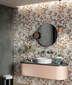 Изумительная проработка графики дизайнерами фабрики ABK Ceramiche позволила создать декоративную линию, где рисунок с каждой соседней плитки плавно перетекает на соседнюю, образуя неразрывную декорированную поверхность.
