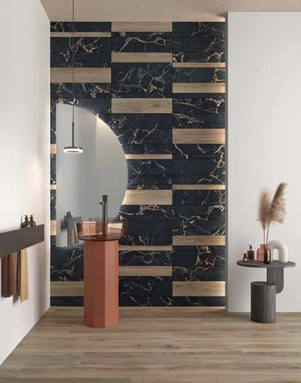 Традиционно фабрика ABK Ceramiche предлагает декорированный фон, сочетающий в себе цвета всех видов фоновой плитки, с геометрическим узором. Наличие такого элемента в каждой новой коллекции позволяет декорировать помещение без существенного изменения общей стоимости проекта. Для коллекции SENSI SIGNORIA предлагаются декоры OPUS в двух вариантах цветового решения - CALACATTA и LILAC. Такой декорированный фон выпускается исключительно в толщине 9 мм и с полированной поверхностью и в двух форматах - 60х120 и 120х120.