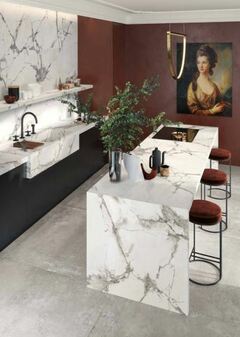 Новой коллекцией ABK SENSI UP фабрика традиционно расширяет гамму керамического гранита в мраморном дизайне используя графику редкого вида мраморов, тщательно отобранную из образцов собранных по всему миру. В состав коллекции вошли четыре основных цвета - три светлых и один черный, а затем был создан еще один фон (Intarsio) составленный из различных геометрических фигур имеющих дизайн основных базовых цветов, плюс один нейтрально-серый, который не был утвержден для производства, однако был использован при разработке этого фона. В последствии к основной цветовой гамме был добавлен наиболее популярный цвет в коллекции SENSI WIDE - GRAND ANTIQUE. Для серии SENSI UP было решено использовать мощности современной линии в Finale Emilia, где находятся основное производство всей группы ABK по выпуску тонкого керамического гранита большого формата. По этой причине основная часть ассортимента коллекции приходится на керамический гранит толщиной 7 мм в форматах 160х320, 120х270 и 120х120. Для более консервативных покупателей предлагается линия керамического гранита стандартной толщины 9 мм в единственном формате 60х120.