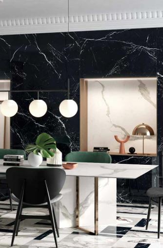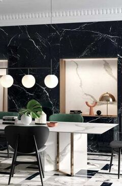 В качестве декоративной линии, двигаясь в тренде современных веяний, фабрика ABK Ceramiche разработала декорированный фон сочетающийся со всеми имеющимися цветами фоновой плитки. INTARSIO (интарсио) - это фоновая плитка с имитацией мраморных плит собранных из разных пород мрамора различных геометрических форм. Учитывая тот факт, что плитка должна сочетаться как с тонкой плитой 7 мм, так и с классической, толщиной 9 мм, фабрика предусмотрела производство плитки в обеих толщинах. Таким образом плитка размера 60х120 предлагается в толщине 9 мм, а в формате 120х120 в толщине 7 мм. Оба вида производятся исключительно в лаппатированном исполнении.
