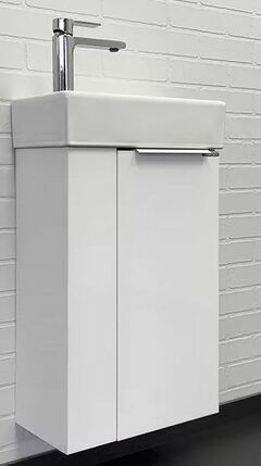 Компактная подвесная тумба-умывальник Comforty Асти для небольших санузлов. Фасад и корпус тумбы изготовлены из влагостойкого ДСП. В комплекте асимметричная раковина с отверстием под смеситель сбоку. Раковина покрыта глазурью со всех сторон, поэтому может быть установлена как в правом, так и в левом варианте.