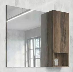 Створка оснащена системой плавного закрывания. Высококачественное зеркальное полотно с амальгамой на основе серебра. Фасад и корпус из влагостойкого ЛДСП Дуб темно-коричневый. За створкой одна горизонтальная полка.
