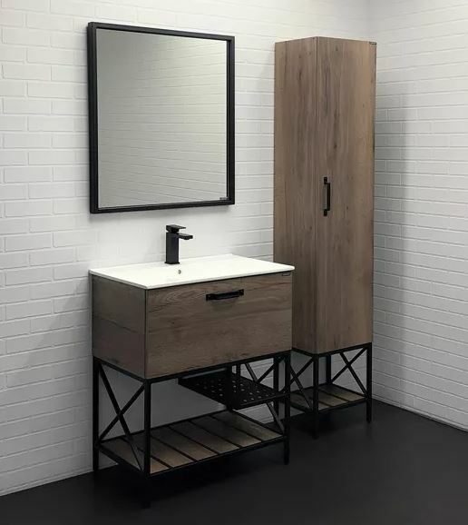 В комплекте белая раковина с прямоугольной чашей. В основе тумбы - каркас из стального профиля окрашенный черной эмалью с нижней широкой полкой и средней полкой для полотенец. Стильная ручка ящика в том же цвете что и каркас. Тумба подготовлена для подключения водоснабжения снизу.