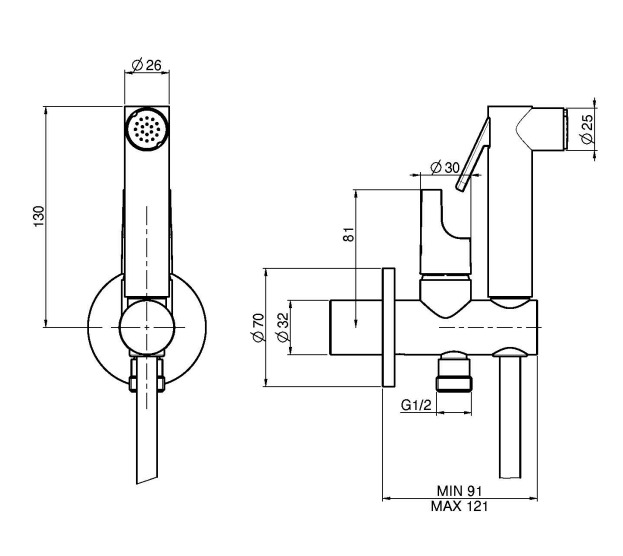 Встраиваемый гигиенический душ итальянской фабрики CARLO FRATTINI (FIMA)