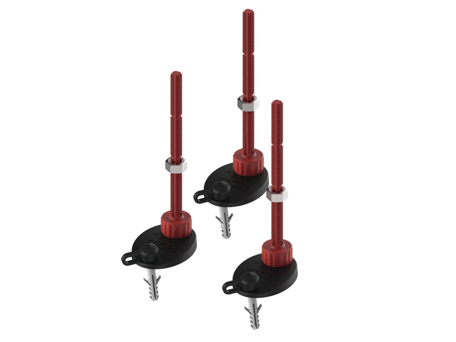 Комплект состоит из 3 монтажных опор с шумоизоляционным колпачком и крепежными элементами.