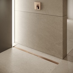 Подрезаемый дренажный канал TECEDrainprofile устанавливается от стены до стены, декоративную накладку из нержавеющей стали можно обрезать по длине под нужный размер.
