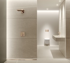 Подрезаемый дренажный канал TECEDrainprofile устанавливается от стены до стены, декоративную накладку из нержавеющей стали можно обрезать по длине под нужный размер.