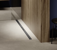 Подрезаемый дренажный канал TECEDrainprofile устанавливается от стены до стены, декоративную накладку из нержавеющей стали можно обрезать по длине под нужный размер.