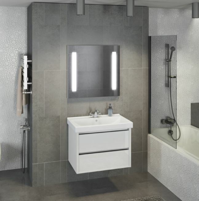 Мебель для ванной комнаты COMFORTY подвесная тумба с двумя выдвижными ящиками оснащенными системой плавного закрывания. Фасады покрыты белой глянцевой эмалью.