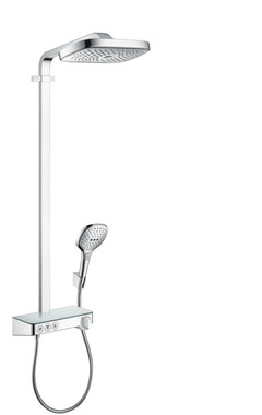 Душевая система немецкой фабрики HANSGROHE с эффектом тропического дождя. Серия Raindance E Showerpipe 3jet имеет термостат с кнопочным управлением и состоит из: