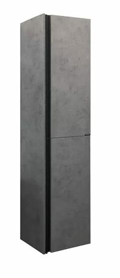 Подвесная шкаф-колонна отличное решение для хранения разных предметов необходимых в ванной комнате. Дверцы оборудованы петлями с механизмами плавного закрывания. За каждой дверцей по две горизонтальные полки. В качестве ручки использован металлический профиль окрашенный в черный цвет.