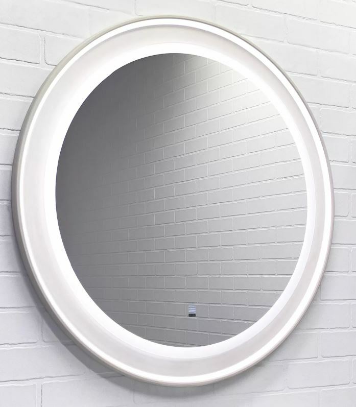 Высококачественное зеркальное полотно с амальгамой на основе серебра. Зеркало оборудовано ореольной и фронтальной Led подсветкой с бесконтактным включателем со встроенной функцией регулировки яркости. Температура подсветки: 6000-6500К холодная. Основа зеркала из МДФ фрезерована кантом по периметру и облицована в матовую пленку цвета "серый шёлк".