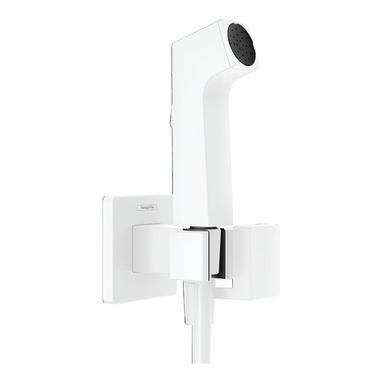 Немецкий гигиенический душ HANSGROHE доступен в следующих цвета: белый матовый, черный матовый, шлифованный черный хром, шлифованная бронза, полированное золото. Корпус гигиенической лейки сделан из пластик, гладкий шланг длиной 125 см в комплекте. Скрытая часть арт 29235180 приобретается дополнительно.