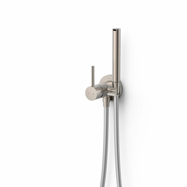 Режим работы гигиенического душа: управление стандартным однорычажным смесителем. При включении вода сразу подается из лейки. Гигиеническая лейка из латуни без клавиши.