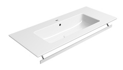 Раковина с переливом, с отверстием для смесителя, донный клапан приобретается дополнительно. Полотенцедержатель - опция, приобретается дополнительно. Раковина подходит для комбинации с тумбой.