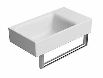 Раковина без перелива, глазуровка с четырех сторон, отверстие для смесителя может быть слева/справа, донный клапан приобретается дополнительно. Раковина поставляется БЕЗ отверстий, они размечены в керамике, пробиваются на месте. Полотенцедержатель - опция по желанию, приобретается дополнительно.