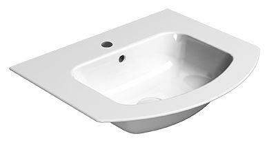 Подвесная раковина фабрики GSI серии PURA размером 52*44 см доступна в белом глянцевом цвете.