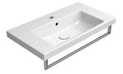 Раковина с переливом, отверстия для смесителя пробиты. Полотенцедержатель - опция по желанию, приобретается дополнительно.