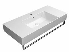 Подвесная раковина серии KUBE X размером 100*47 см доступна в белом глянцевом цвете. Раковина может быть установлена на столешницу. Раковина с переливом, с одним отверстием для смесителя, донный клапан приобретается дополнительно.