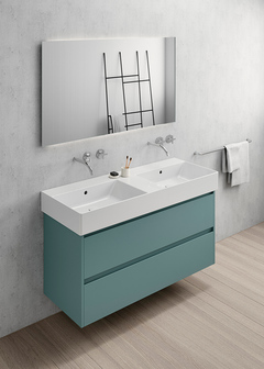 Двойная раковина серии KUBE X размером 120*47 см доступна в белом глянцевом цвете. Раковина может быть установлена на столешницу. Раковина с переливом, с отверстиями для смесителей, донный клапан приобретается дополнительно. ВНИМАНИЕ - для установки раковины требуется крепеж FLAVABO – 2 шт.