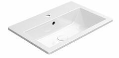 Раковина с переливом, с 1 отверстием для смесителя, устанавливается на столешницу, донный клапан приобретается дополнительно.