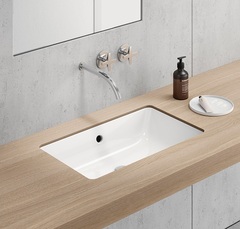 Раковина с переливом, устанавливается под столешницу, донный клапан приобретается дополнительно.