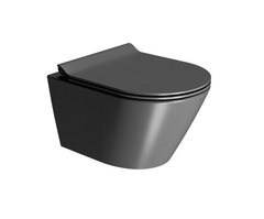 Подвесной безободковый унитаз GSI KUBE X укороченной длины 50 см от стены.