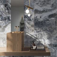Главной изюминкой этих двух коллекций является особенная графика мрамора. К классическому рисунку мрамора добавлена некоторая "сказочная" составляющая, вызывающая ассоциацию с различными материями.