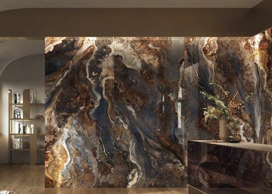 Главной изюминкой этих двух коллекций является особенная графика мрамора. К классическому рисунку мрамора добавлена некоторая "сказочная" составляющая, вызывающая ассоциацию с различными материями.