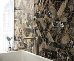 Дизайн коллекции NAXOS RHAPSODY. Эта серия ориентирована для облицовки как пола, так и стен приватных интерьеров и публичных помещений небольшой проходимости. Основная отличительная черта этой серии – это яркие цвета и оригинальная графика, использованные для создания коллекции. Смелые цветовые решения выделяют коллекцию RHAPSODY среди массы коллекций с фотографической точностью, воспроизводящих структуру мрамора. Многие варианты дизайна не имеют аналогов в натуральном камне, но от этого только приобретают дополнительную ценность. Решение фабрики NAXOS дополнить фоновую плитку декоративными элементами, соединяющими в себе графику нескольких видов мрамора, позволяет применять такую декорацию для различных цветов плитки, логически соединяя их в единый ансамбль.