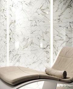 Поскольку основное назначение коллекции – внутренние помещения, фабрика решила выпускать коллекцию исключительно в полированном (lappato) варианте исполнения. Полированная поверхность придает особую глубину цвета и подчеркивает элегантность рисунка мрамора. Цветовые переходы становятся более выраженными, а "трещины" и цветные вены заметнее. Второй аспект – это предназначение плитки из серии NAXOS RHAPSODY преимущественно для интерьеров квартир и частных домов. По этой причине коллекция предлагается в двух основных форматах – 60х60 и 60х120 при толщине плитки 7 мм. Для внутренних приватных интерьеров такой толщины вполне достаточно и позволяет с легкостью использовать плитку как для укладки на пол, так и для облицовки стен, а небольшой формат позволяет легко адаптировать дизайн как к сложным поверхностям небольших помещений, так и к весьма просторным.