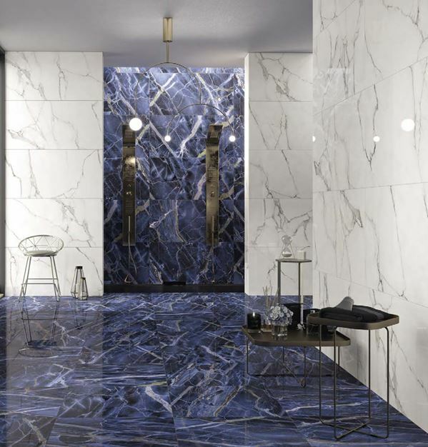 Поскольку основное назначение коллекции – внутренние помещения, фабрика решила выпускать коллекцию исключительно в полированном (lappato) варианте исполнения. Полированная поверхность придает особую глубину цвета и подчеркивает элегантность рисунка мрамора. Цветовые переходы становятся более выраженными, а "трещины" и цветные вены заметнее. Второй аспект – это предназначение плитки из серии NAXOS RHAPSODY преимущественно для интерьеров квартир и частных домов. По этой причине коллекция предлагается в двух основных форматах – 60х60 и 60х120 при толщине плитки 7 мм. Для внутренних приватных интерьеров такой толщины вполне достаточно и позволяет с легкостью использовать плитку как для укладки на пол, так и для облицовки стен, а небольшой формат позволяет легко адаптировать дизайн как к сложным поверхностям небольших помещений, так и к весьма просторным.
