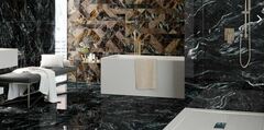 Поскольку основное назначение коллекции – внутренние помещения, фабрика решила выпускать коллекцию исключительно в полированном (lappato) варианте исполнения. Полированная поверхность придает особую глубину цвета и подчеркивает элегантность рисунка мрамора. Цветовые переходы становятся более выраженными, а "трещины" и цветные вены заметнее. Второй аспект – это предназначение плитки из серии NAXOS RHAPSODY преимущественно для интерьеров квартир и частных домов. По этой причине коллекция предлагается в двух основных форматах – 60х60 и 60х120 при толщине плитки 7 мм. Для внутренних приватных интерьеров такой толщины вполне достаточно и позволяет с легкостью использовать плитку как для укладки на пол, так и для облицовки стен, а небольшой формат позволяет легко адаптировать дизайн как к сложным поверхностям небольших помещений, так и к весьма просторным.