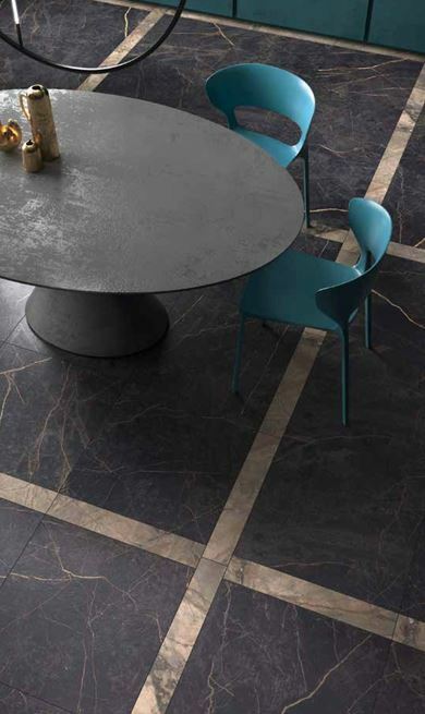 Классические структуры можно увидеть в цветах White Statuario и Grey, а остальные четыре цвета весьма оригинальны. Особо стоит отметить цвет Black, обладающий золотисто-оранжевыми венами, которые особо эффектно выглядят на поверхности графитового цвета. Неожиданный цвет Ivory, с крупными рыжими подпалинами выглядит очень оригинально. Бесспорными хитами этой серии являются цвет White и Brown, поскольку прекрасно сочетаются с большинством возможных интерьерных решений.