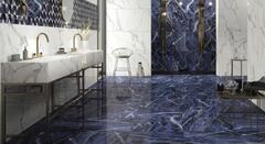 Поскольку основное назначение коллекции – внутренние помещения, фабрика решила выпускать коллекцию исключительно в полированном (lappato) варианте исполнения. Полированная поверхность придает особую глубину цвета и подчеркивает элегантность рисунка мрамора. Цветовые переходы становятся более выраженными, а "трещины" и цветные вены заметнее. Второй аспект – это предназначение плитки из серии NAXOS RHAPSODY преимущественно для интерьеров квартир и частных домов. По этой причине коллекция предлагается в двух основных форматах – 60х60 и 60х120 при толщине плитки 7 мм. Для внутренних приватных интерьеров такой толщины вполне достаточно и позволяет с легкостью использовать плитку как для укладки на пол, так и для облицовки стен, а небольшой формат позволяет легко адаптировать дизайн как к сложным поверхностям небольших помещений, так и к весьма просторным.