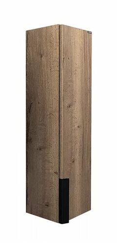 Подвесная полуколонна изготовлена из влагостойкого ЛДСП цвета Дуб темный. За одной створкой две горизонтальные полки. Ручка из окрашенного в черный цвет металла. Полуколонна универсальна, может быть подвешена в правом и левом варианте.
