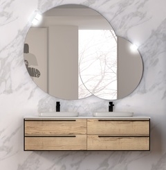 Комплект мебели GRACE выпускается в трех размерах: 70 см, 100 см, 150 см (с двойной раковиной). Доступно 2 цвета на выбор: Light Concrete (светло серый), Halifax Oak (фактура дерева дуб).