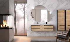 Комплект мебели GRACE выпускается в трех размерах: 70 см, 100 см, 150 см (с двойной раковиной). Доступно 2 цвета на выбор: Light Concrete (светло серый), Halifax Oak (фактура дерева дуб).