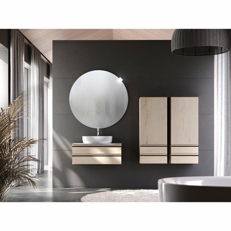 В коллекция ALEXIS есть открытые и закрытые пеналы разных размеров, подвесные шкафчики, зеркала и зеркальные шкафы.