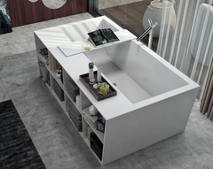 Отдельностоящая ванна из композитного материала KERROCK (состоит из гидроксида алюминия и связующих полимеров на основе акрила). Материал на ощупь напоминает теплый камень, легко чистится и не желтеет со временем. Материал непористый - не впитывает загрязнения и красящие вещества, ничего не выделяет при контакте с горячей водой, имеет однородную структуру по всей толщине ванны. Поверхность ванны устойчива к химикатам и механическим повреждениям.
