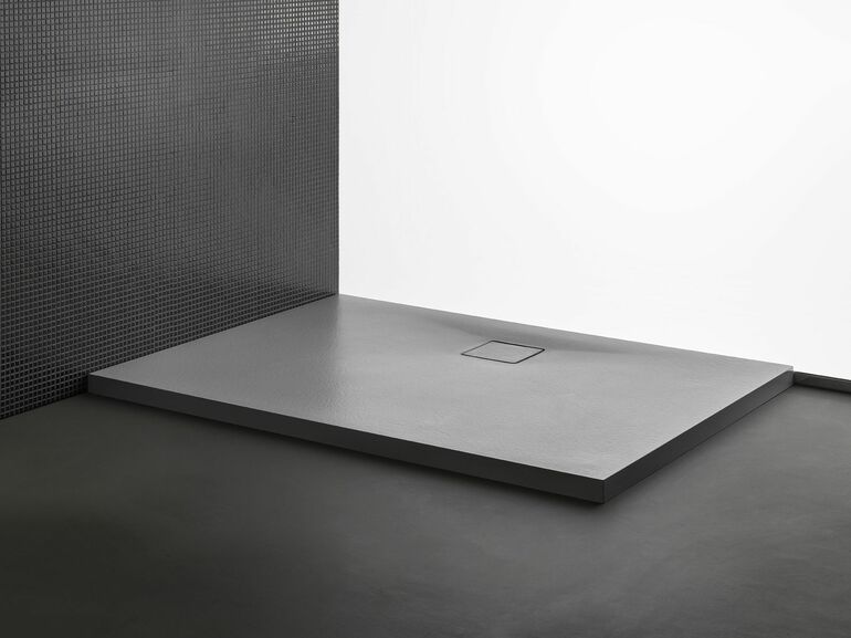 Искусственный камень (композитный материал фабрики KOLPA SAN) делается на основе мраморной крошки и связующих смол. Материал абсолютно непористый, ничего не впитывает и не желтеет со временем. Полностью безопасен для людей и ничего не выделяет при контакте с горячей водой. Поверхность поддона приятная на ощупь, теплая, не скользит. Композитный материал твердый сам по себе, поэтому геометрия поддона очень ровная, обеспечено четкое примыкание к стенам и углам.
