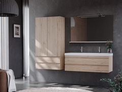 В коллекция NAOMI есть открытые и закрытые пеналы разных размеров, подвесные шкафчики, зеркала и зеркальные шкафы.