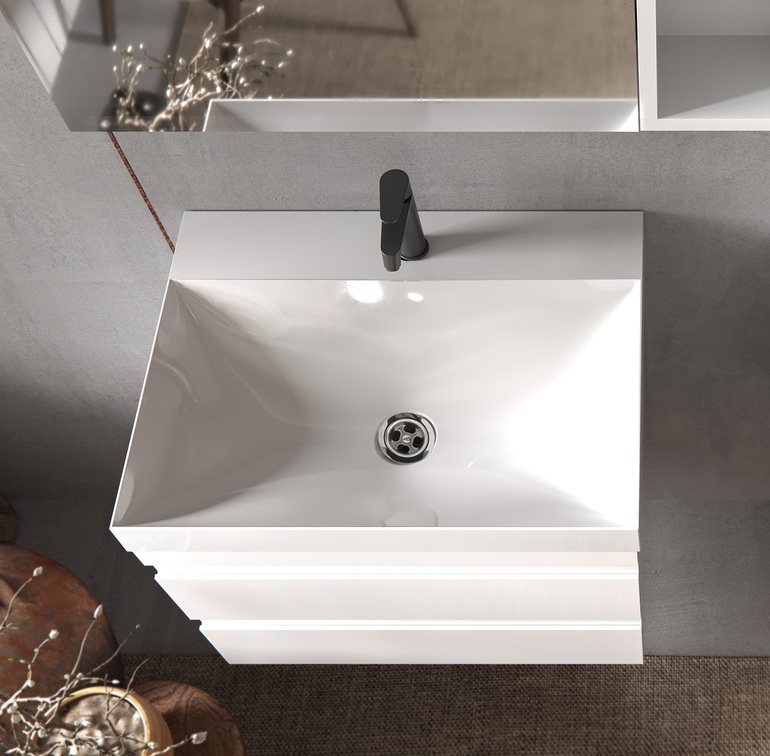 Материал раковины гладкий, с четкой геометрией и ровными углами. Глянцевая поверхность легко чистится, не желтеет со временем, не впитывает загрязнения и красящие вещества.