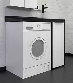 Комплект «Лозанна» разработан для рационального использования места в ванной комнате и объединяет под одной столешницей стиральную машину и тумбу с умывальником.